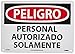 | Feature | Header "PELIGRO" and legend "PERSONAL AUTORIZADO SOLAMENTE" |