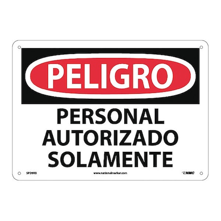 NMC SPD9RB OSHA Sign, Legend "PELIGRO - PERSONAL AUTORIZADO SOLAMENTE", 14 Length x 10" Height, Rigid Plastic, Black/Red on White
