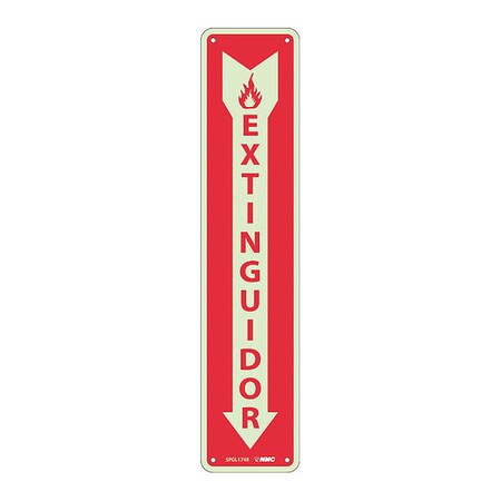 NMC SPGL174R Glow Fire Sign, Legend "EXTINGUIDOR", 4 Length x 18" Height, Rigid Plastic, Red on Yellow