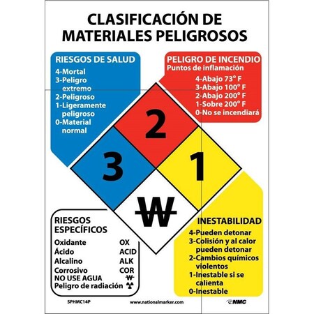 NMC SPHMC14P Adhesive Vinyl Hazardous Materials Classification Sign, 10" Length x 14" Height, Blue/Black/Red/Yellow on White