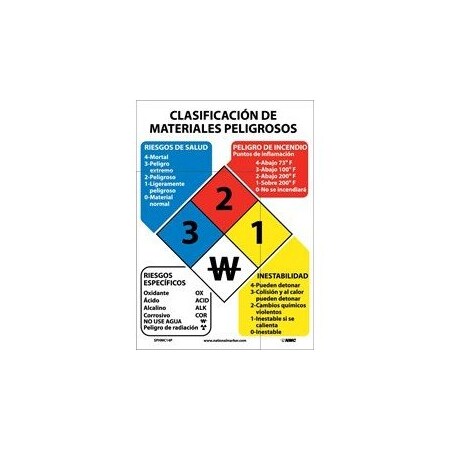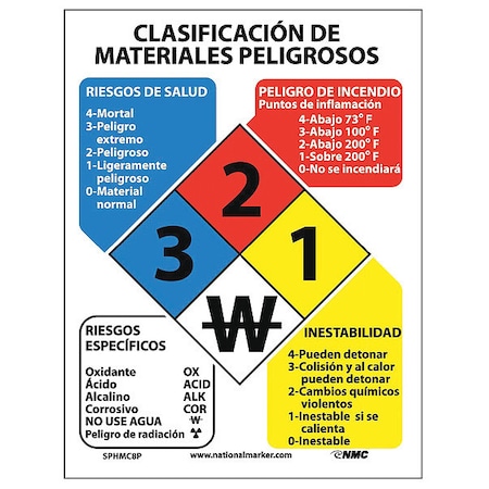 NMC SPHMC8P Adhesive Vinyl Hazardous Materials Classification Sign, 8" Length x 11" Height, Blue/Black/Red/Yellow on White