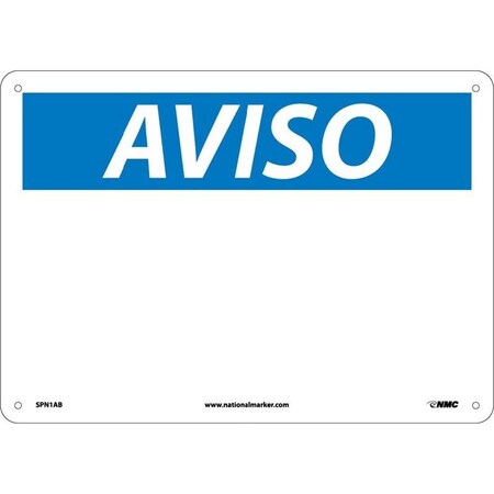 NMC SPN1PB OSHA Sign, Legend "AVISO", 14 Length x 10" Height, Pressure Sensitive Vinyl, Blue on White