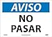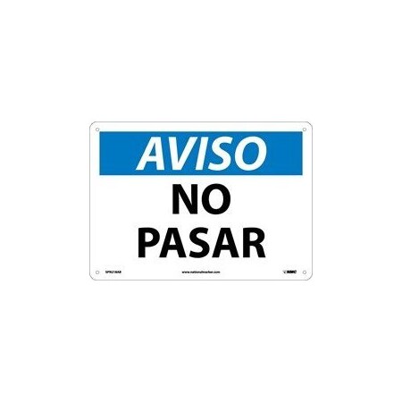 NMC SPN218PB OSHA Sign, Legend "AVISO - NO PASAR", 14 Length x 10" Height, Pressure Sensitive Vinyl, Blue/Black on White