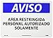 | Feature | Header "AVISO" and legend "AREA RESTRINGIDA PERSONAL AUTORIZADO SOLAMENTE" |