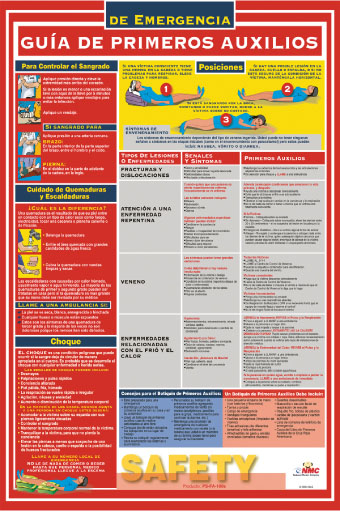 NMC - National Marker Company Poster, First Aid Guide, Spanish, 24X18 Spanish Language Posters Hang posters around your facility to provide detailed information about regulations and best practices.
