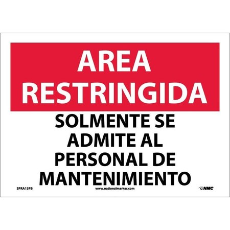 NMC National Marker SPRA15RB Area Restringida, Solmente Se Admite Al Personal De Mantenimiento, 10" x 14", Rigid Plastic, Sign