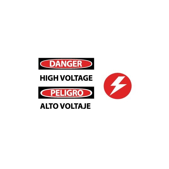 Danger - High Voltage, 18" Wide x 10" High, Pressure Sensitive Vinyl Safety SignEnglish/Spanish, Rectangular, 0.004" Thick, for Accident Prevention