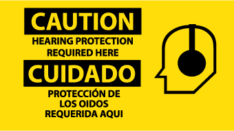 NMC National Marker Corp. SPSA118P Caution, Hearing Protection Required Here (Bilingual W/Graphic) Sign, 10 Inch X 18 Inch, PS Vinyl