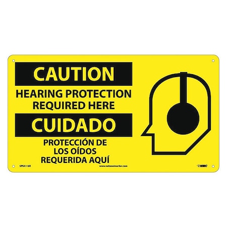NMC National Marker Corp. SPSA118R Caution, Hearing Protection Required Here (Bilingual W/Graphic) Sign, 10 Inch X 18 Inch, Rigid Plastic