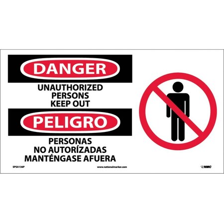 Danger - Unauthorized Persons - Keep Out, 18" Wide x 10" High, Pressure Sensitive Vinyl Safety SignEnglish/Spanish, Rectangular, 0.004" Thick, for Accident Prevention