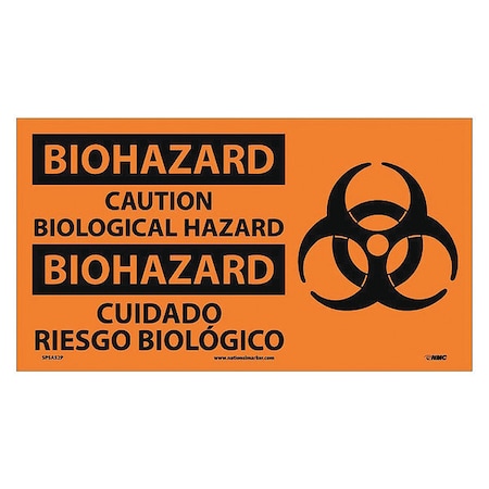 NMC National Marker Corp. SPSA52P Biohazard, Caution Biological Hazard (Bilingual W/Graphic) Sign, 10 Inch X 18 Inch, PS Vinyl
