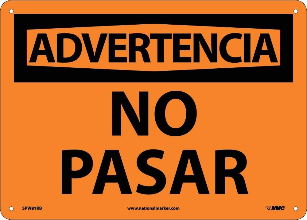 NMC National Marker SPW81RB Advertencia, No Pasar, 10" x 14", Rigid Plastic, Sign