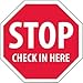 NMC National Marker SS4R NMC Warning Sign, Stop, Check in HERE”, 12” Height x 12” Width, Rigid Plastic, White on Red
