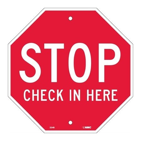 NMC SS4R "STOP CHECK IN HERE", OCTAGON, 12X12, RIGID PLASTIC SECURITY SIGN