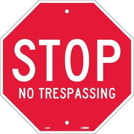 NMC SS6R Stop - NO TRESSPASSING Sign - 12 in. x 12 in. Eight Sided Rigid Plastic Secure Admittance Sign with White Text on Red Base