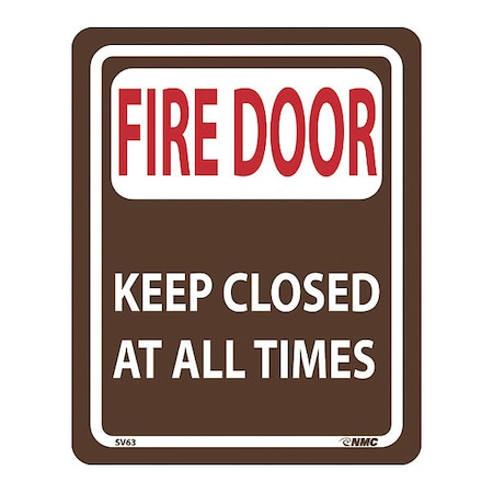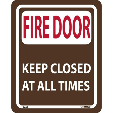 NMC SV63 FIRE Door - Keep Closed at All Times Sign - 8 in. x 10 in. Acrylic Fire Safety Sign with Red/White Text on White/Brown Base