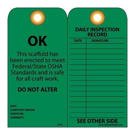 NMC Pack of 25 Scaffold Inspection Tags, 3" x 6", 2 Sided Vinyl Inspection Tag with Grommet, SVT3