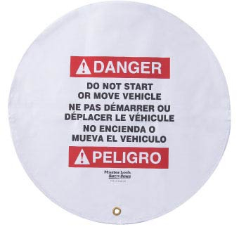 NMC - National Marker Company Steering Wheel Cover, 20 Inches Steering Wheel Covers Prevent driving of a vehicle that is disabled or being worked on. Made from reinforced vinyl screenprinted with a trilingual message.