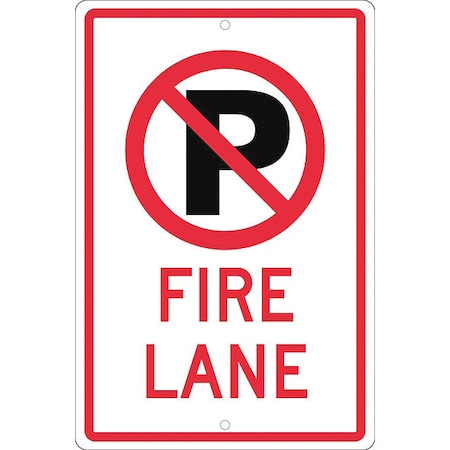 NMC TM010H “FIRE Lane” No Parking Sign - 12 in. x 18 in, Red on White, Standard Aluminum Parking Prohibition Sign with Graphic