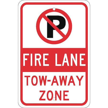 NMC TM062K NO Parking FIRE Lane Tow-Away Zone Sign - 12 in. x 18 in., Red/White on White/Red, High Intensity Aluminum Parking Prohibition Graphic Sign