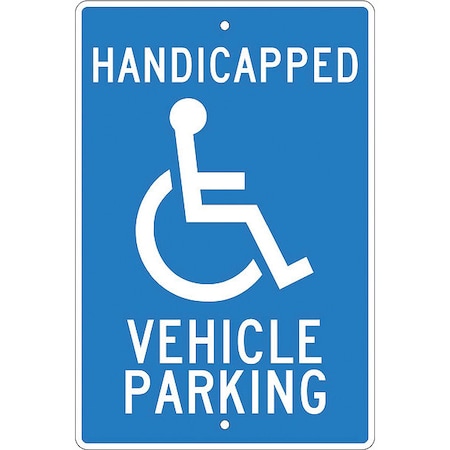 NMC TM10H Handicap Parking Sign with Graphic, "HANDICAPPED VEHICLE PARKING", 12" Width x 18" Height, Aluminum, White on Blue, 0.063" Thick