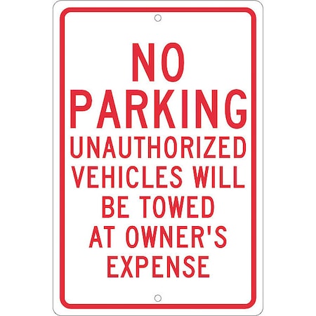 TM12H-NO PARKING UNAUTHORIZED VEHICLES WILL BE TOWED, 18X12.063 ALUM