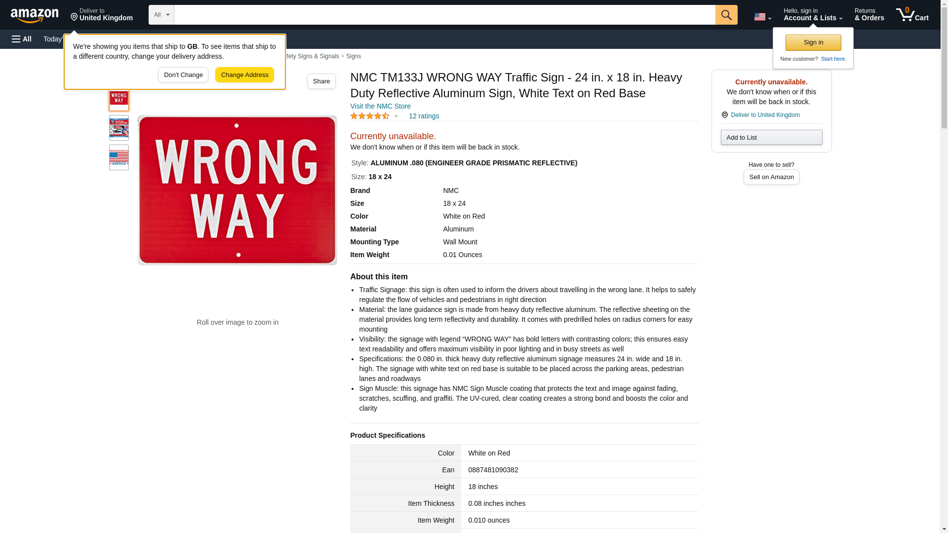 NMC TM133J WRONG WAY Traffic Sign - 24 in. x 18 in. Heavy Duty Reflective Aluminum Sign, White Text on Red Base