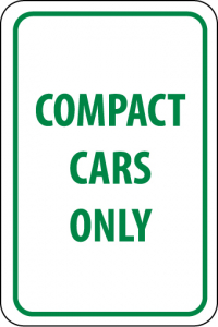 - Parking Signage: this sign is often seen in the private and public parking lots. It clearly informs the drivers that the indicated parking area is reserved only for compact cars