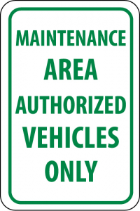 - Visibility: the signage with legend “MAINTENANCE AREA AUTHORIZED VEHICLES ONLY” has bold letters to ensure easy text readability; the contrasting colors of the sign offers maximum visibility in poor lighting