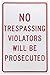 No Trespassing Violators Will Be Prosecuted Sign, TM142G