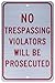 No Trespassing Violators Will Be Prosecuted Sign, TM142J