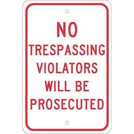 NMC TM142J NO TRESPASSING VIOLATORS WILL BE PROSECUTED Sign - 12 in. x 18 in. Reflective Aluminum No Admittance Sign with Red Text on White Base