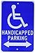 - Specifications: the rectangular heavy-duty reflective aluminum disabled parking sign is 0.080 in. thick, 12 in. wide and 18 in. high. It has white text on blue base to give better visibility. The sign is graffiti proof and resistant to UV and chemicals