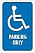 - Visibility: the sign shows the graphic, and legend “PARKING ONLY” in clear, bold letters to ensure clear visibility. The legible letters in contrasting colors makes the sign visible in poor lighting