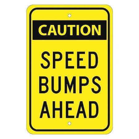 NMC TM159J Traffic Sign, Legend "CAUTION - SPEED BUMPS AHEAD", 12" Length x 18" Height, Engineer Grade Prismatic Reflective Aluminum 0.080, Black On Yellow