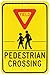 - Clear Visibility: the sign shows the yield symbol and pedestrian crossing graphic and the legend “PEDESTRIAN CROSSING” in contrasting colors and clear, bold letters to ensure clear visibility from a distance and in most lighting conditions