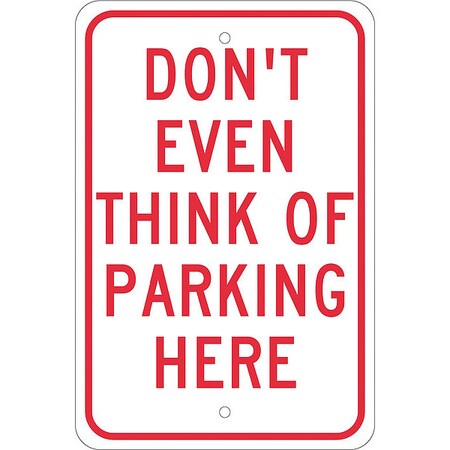 NMC TM16J DON’T EVEN THINK OF PARKING HERE! Sign - 12 in. x 18 in., Heavy Duty Reflective Aluminum No Parking Sign with Red on White