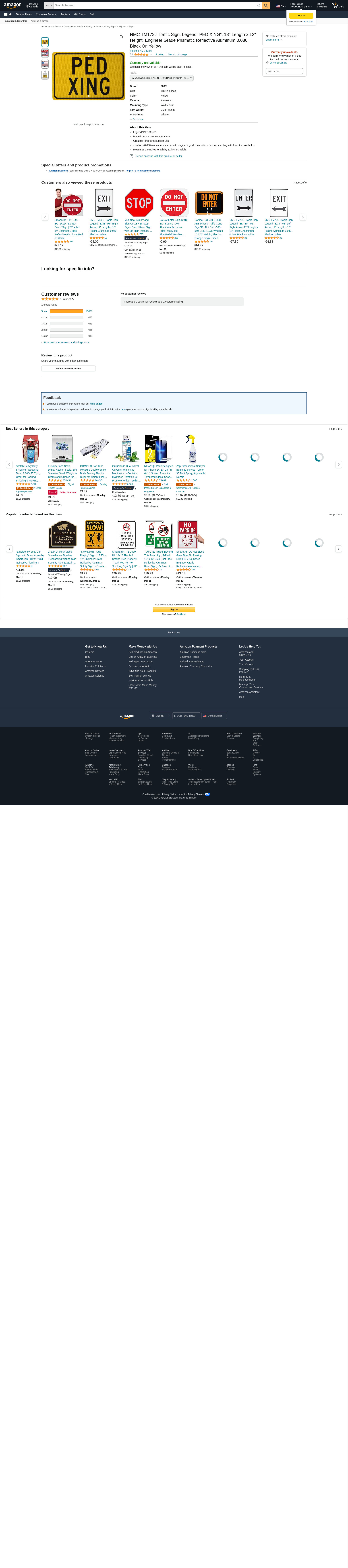 NMC TM173J Traffic Sign, Legend "PED XING", 18" Length x 12" Height, Engineer Grade Prismatic Reflective Aluminum 0.080, Black On Yellow