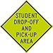 - Visibility: the sign shows the legend “STUDENT DROP-OFF AND PICK-UP AREA” in contrasting colors and clear, bold letters to ensure clear visibility from a distance and in most lighting conditions