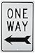 - Specifications: the rectangular aluminum one way traffic safety signage is 0.040 in. thick, 12 in. wide and 18 in. high. It has black text and arrow graphic printed against white base. It is also graffiti proof and resistant to UV and chemicals