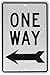 - Specifications: the high intensity reflexive aluminum one-way traffic safety signage is 0.080 in. thick, 12 in. wide and 18 in. high. It has black text and arrow graphic printed against white base. It is also graffiti proof and resistant to UV and chemicals