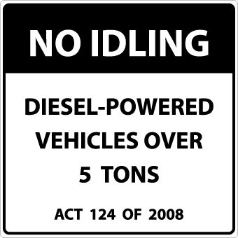 SIGNS, NO IDLING,DEISEL-POWERED VEHICLES OVER 5 TONS ACT 124 OF 2008, 48 X 48.080 ALUM, EG REFLECTIVE