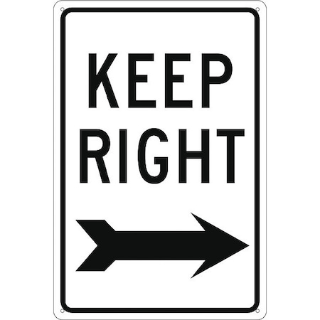 NMC TM27G KEEP RIGHT Sign – 12 in. x 18 in. Standard Aluminum Traffic Safety Sign with Black Arrow Graphic, Text on White Base, 12x18 inches