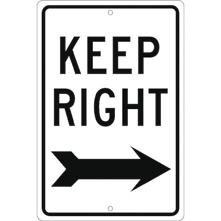 NMC TM27K KEEP RIGHT Sign – 12 in. x 18 in. High Intensity Reflective Aluminum Traffic Safety Sign with Black Arrow Graphic, Text on White Base