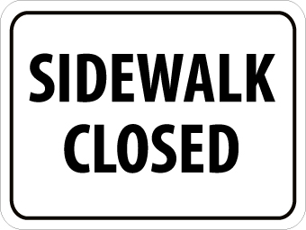 - Pedestrian Signage: this sidewalk sign is to inform the pedestrian that the sidewalk is closed and cannot be used. This sign is mostly used in and around parking areas, dock areas, streets or roadways at the beginning of a restricted sidewalk