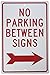 | Feature | Legend "NO PARKING BETWEEN SIGNS" with right arrow graphic |
