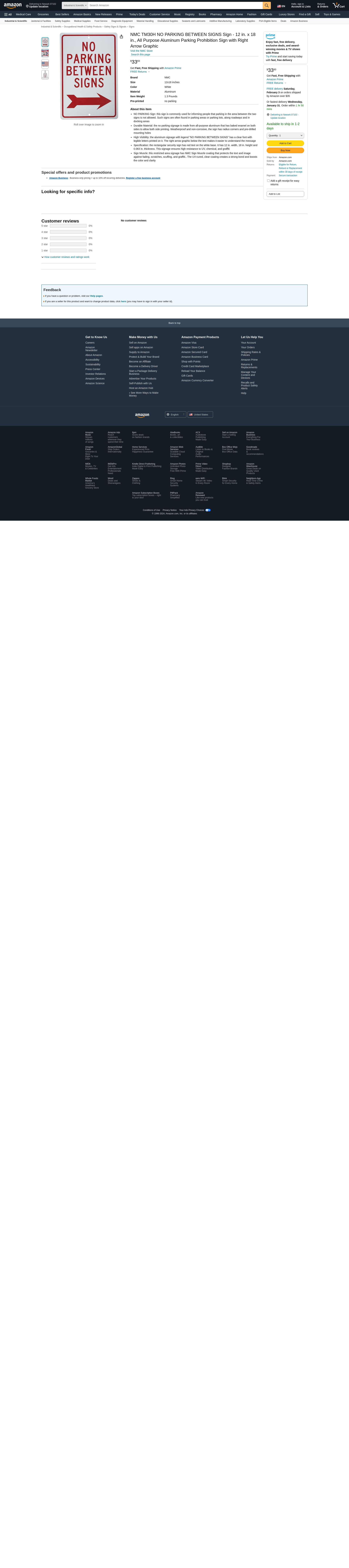 NMC TM30H NO PARKING BETWEEN SIGNS Sign - 12 in. x 18 in., All Purpose Aluminum Parking Prohibition Sign with Right Arrow Graphic