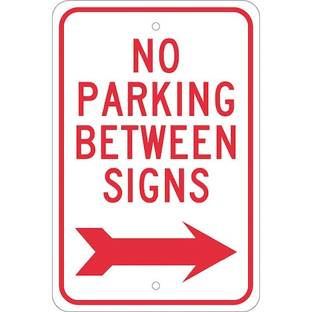 NMC TM30J NO PARKING BETWEEN SIGNS Sign - 12 in. x 18 in., Heavy-Duty Reflective Aluminum Parking Prohibition Sign with Right Arrow Graphic
