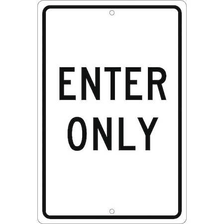 NMC TM36H Traffic Sign, Legend "ENTER ONLY", 12" Length x 18" Height, 0.063 Aluminum, Black On White