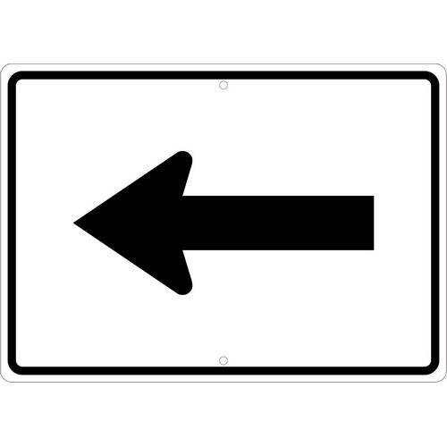 NMC TM502K One Direction Left Arrow Sign – 21 in. x 15 in. High Intensity Reflective Aluminum Traffic Sign with Black Arrow Graphic on White Base